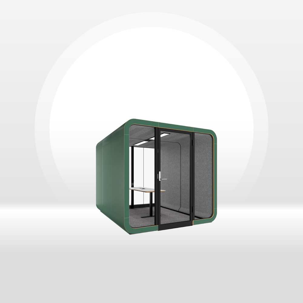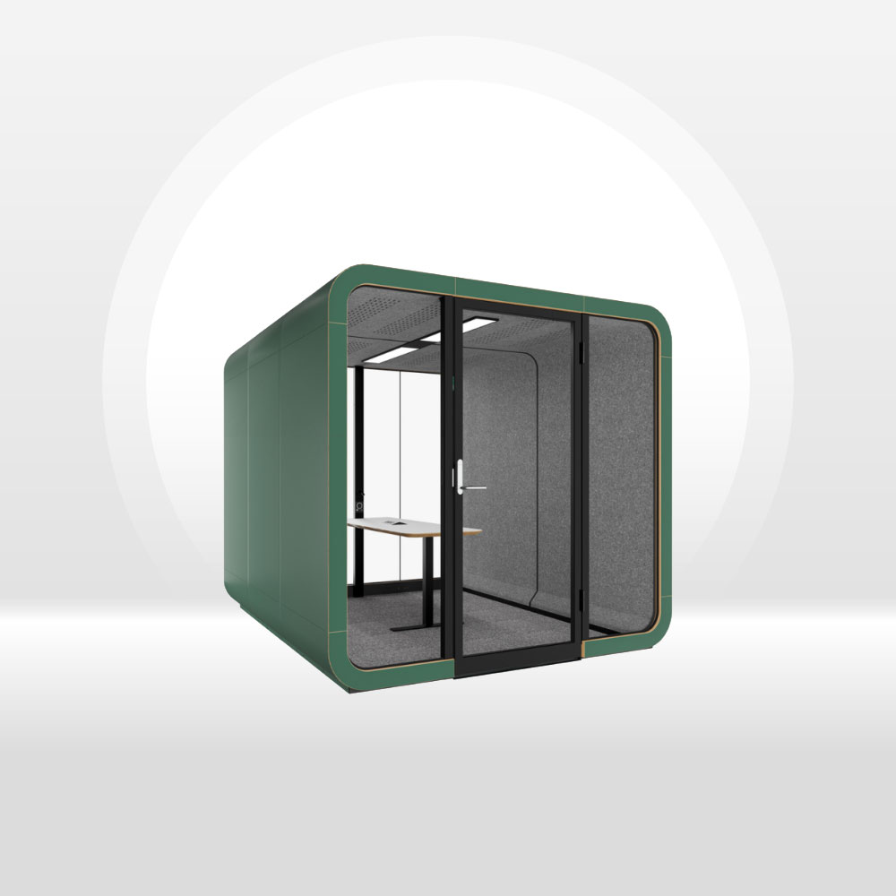 Lucia XXL POD, büyük ekipler ve çok yönlü toplantı ihtiyaçları için tasarlanmış, geniş ve fonksiyonel bir çalışma alanıdır. Yüksek tavan yapısı, ferah iç hacmi ve grup etkileşimini destekleyen yerleşim seçenekleriyle, ekip içi iletişimi maksimum seviyeye çıkarır. İster strateji toplantıları ister yaratıcı beyin fırtınaları için kullanılsın, Lucia XXL POD profesyonel iş süreçlerine özel bir alan sunar. Gelişmiş havalandırma sistemi ve konfor odaklı iç tasarımı, uzun süreli toplantılarda bile konforu elden bırakmaz.